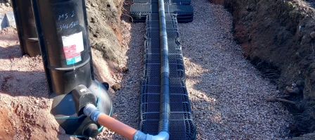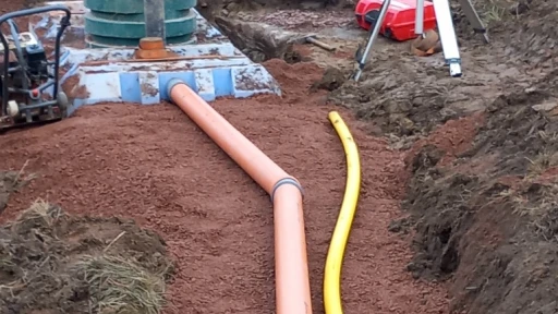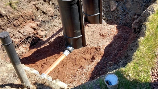 Avloppsbrunn med tillhörande infiltrationsbädd. Vi utförde både grävning och bytte ut gamla avlopp med nya brunnar och tankar.